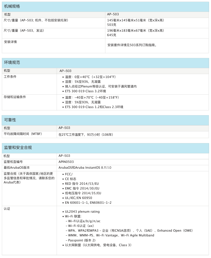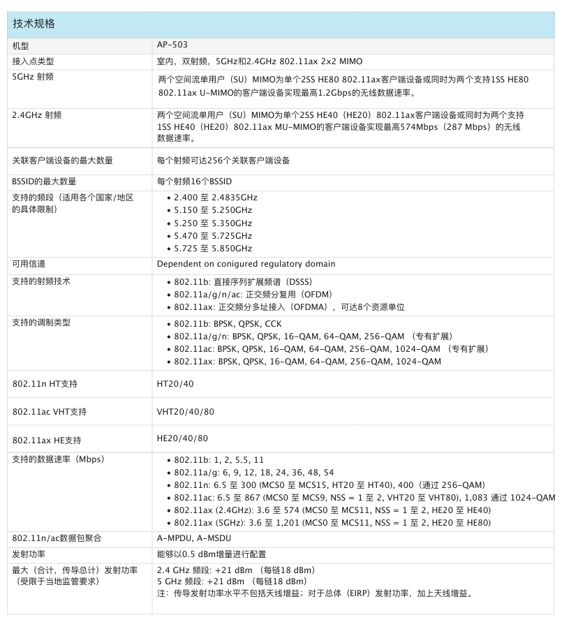 室內(nèi)中密度Wi-Fi 6接入點AP-503提供兼具高成本效益與高性能的連接,可以幫助各類組織應對因移動使用需求提高、轉(zhuǎn)向云或物聯(lián)網(wǎng)環(huán)境而帶來的設備增長挑戰(zhàn)。503 系列的實際聚合數(shù)據(jù)速率高達 1.775 Gbps(HE80/HE40),可以為學校、中型辦公室和零售賣場等中等密度的場地和工作場所提供所需的連接速度和可靠性。